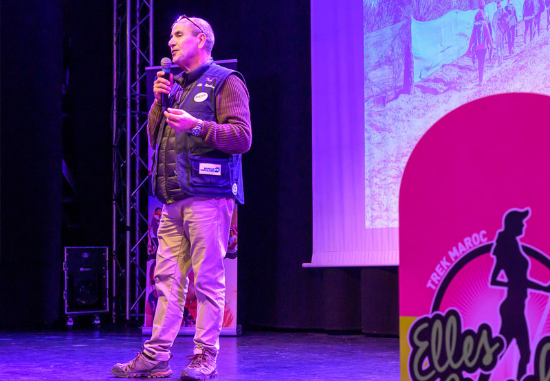 Patrick Péron est alors intervenu pour expliquer le déroulé de la journée solidaire, étape clé du trek, qui donne tout son sens à chaque kilomètre parcouru dans le désert.