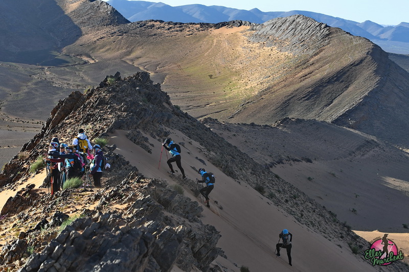 Corinne Péron et son organisation l’avaient particulièrement peaufinée : un parcours inédit, dunettes au sable mou, grand erg de dunes jaunes, regs ô combien caillouteux, du dénivelé et de l’escalade à couper les jambes et le souffle !